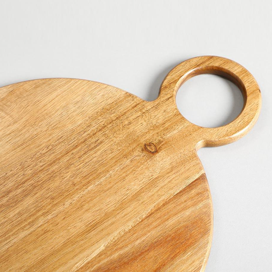 Round Acacia Wood Serving Board with Handle