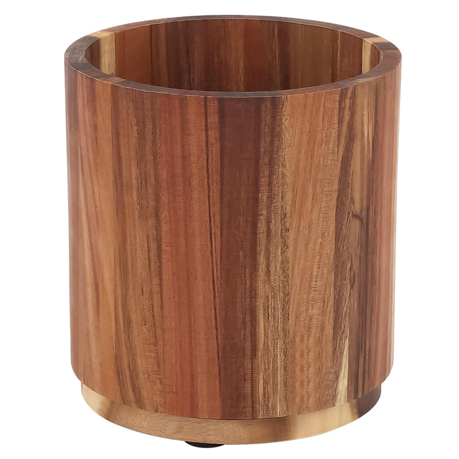 Custom Acacia Wood Utensil Holder with Rotating Base