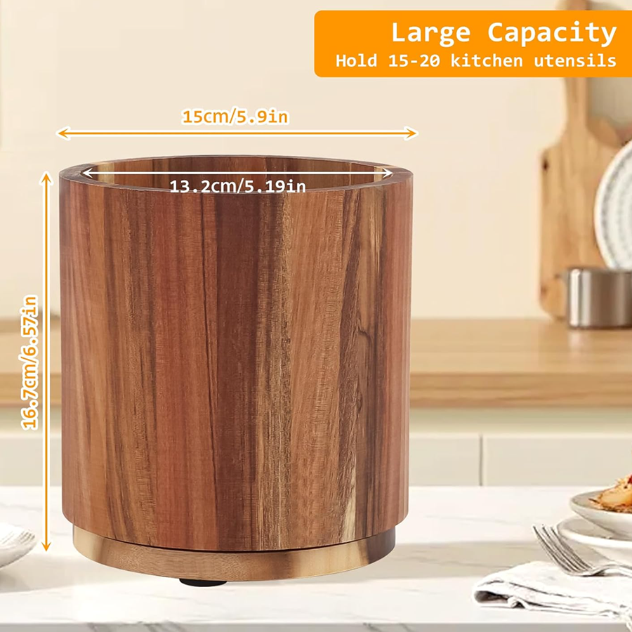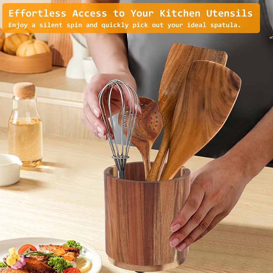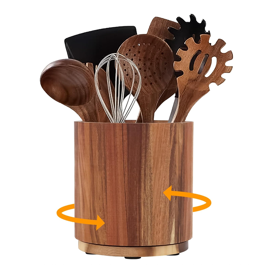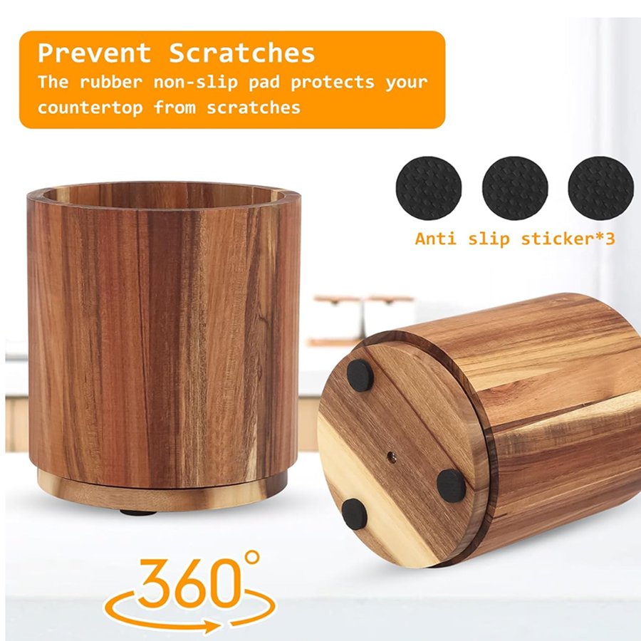 Product Name: Custom Acacia Wood Utensil Holder with Rotating Base