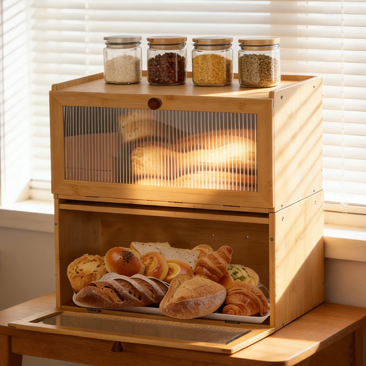 Beyond bread storage, this bamboo box can also be used to store snacks, dry food, or small kitchen essentials, making it a flexible addition to any kitchen setup.