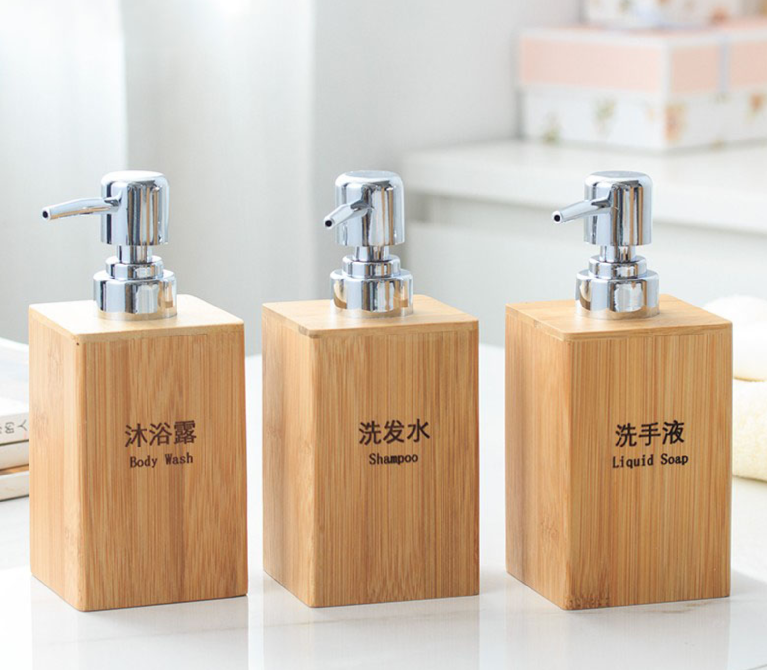 This bamboo liquid soap dispenser is made from solid natural bamboo, offering a clean and modern look for bathroom and kitchen use. The square shape provides a stable structure, while the smooth pump head ensures easy and controlled dispensing.