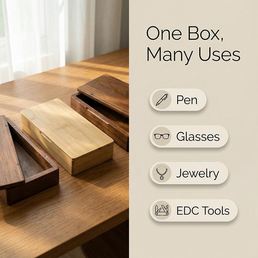 Enhance your product line with our versatile bamboo storage boxes. Crafted for elegance and durability, these boxes are perfect for high-end packaging, desk organization, or gift sets. As a direct manufacturer, we provide full OEM/ODM services to meet your brand’s specific needs.