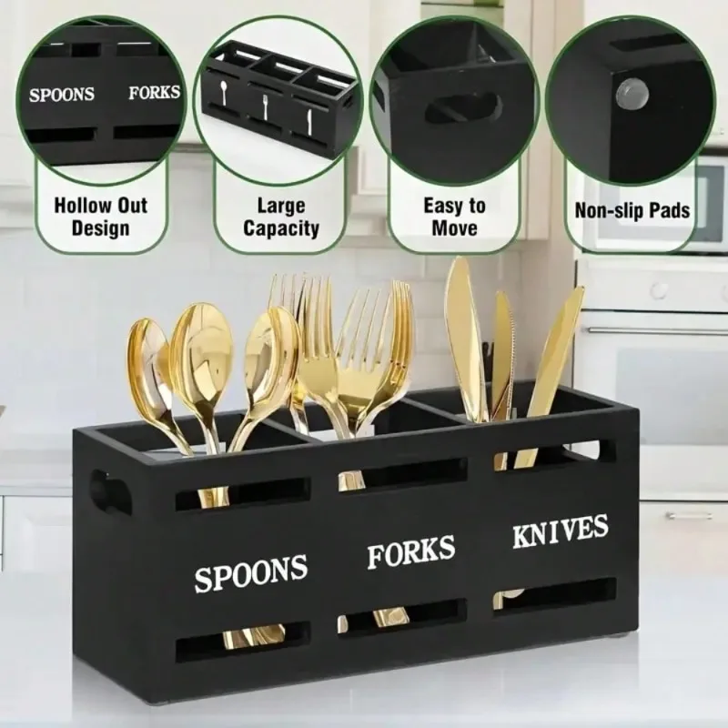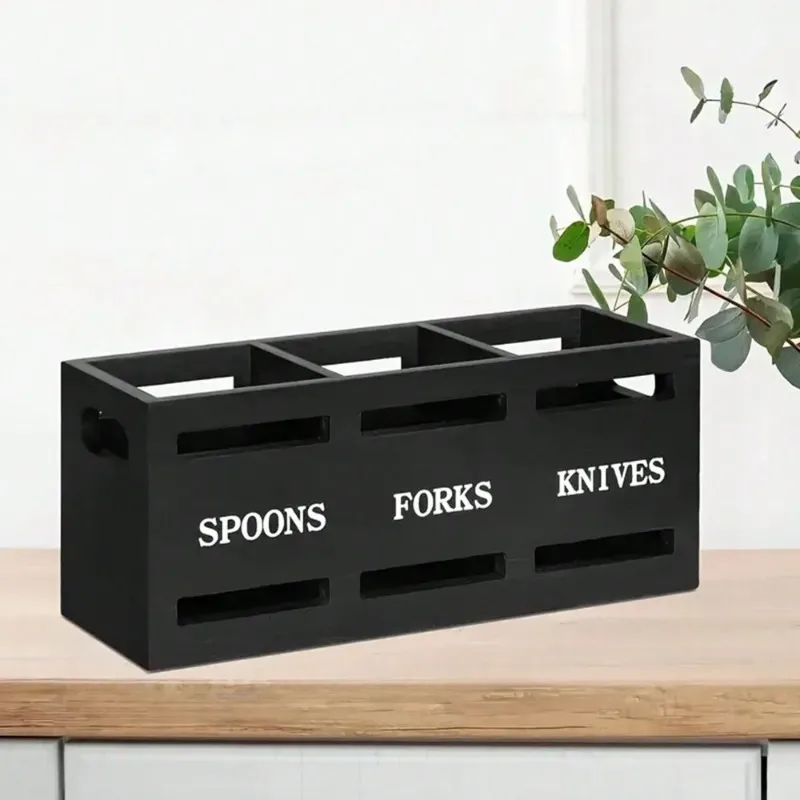 This wooden cutlery organizer is ideal for home kitchens, cafés, restaurants, and retail brands seeking practical and decorative kitchen storage solutions.