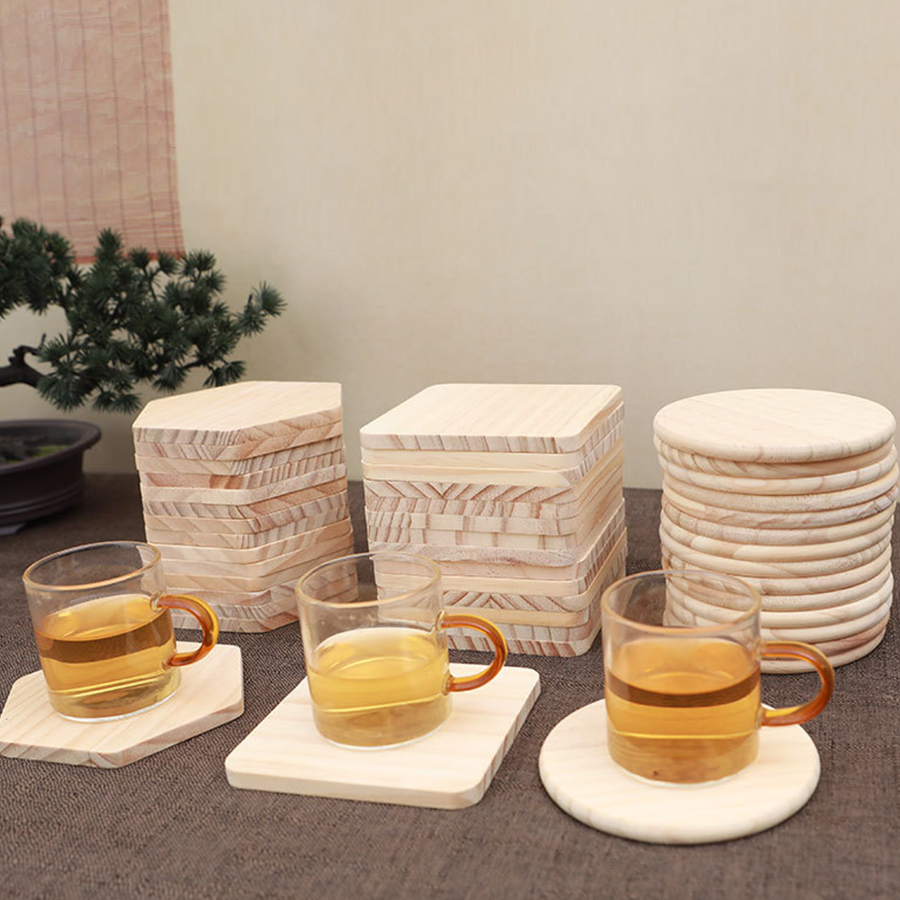 Each coaster is cut from solid pine wood boards and carefully sanded. The surface feels smooth to the touch and helps protect tables from heat marks and moisture caused by hot drinks, tea, or cold beverages.