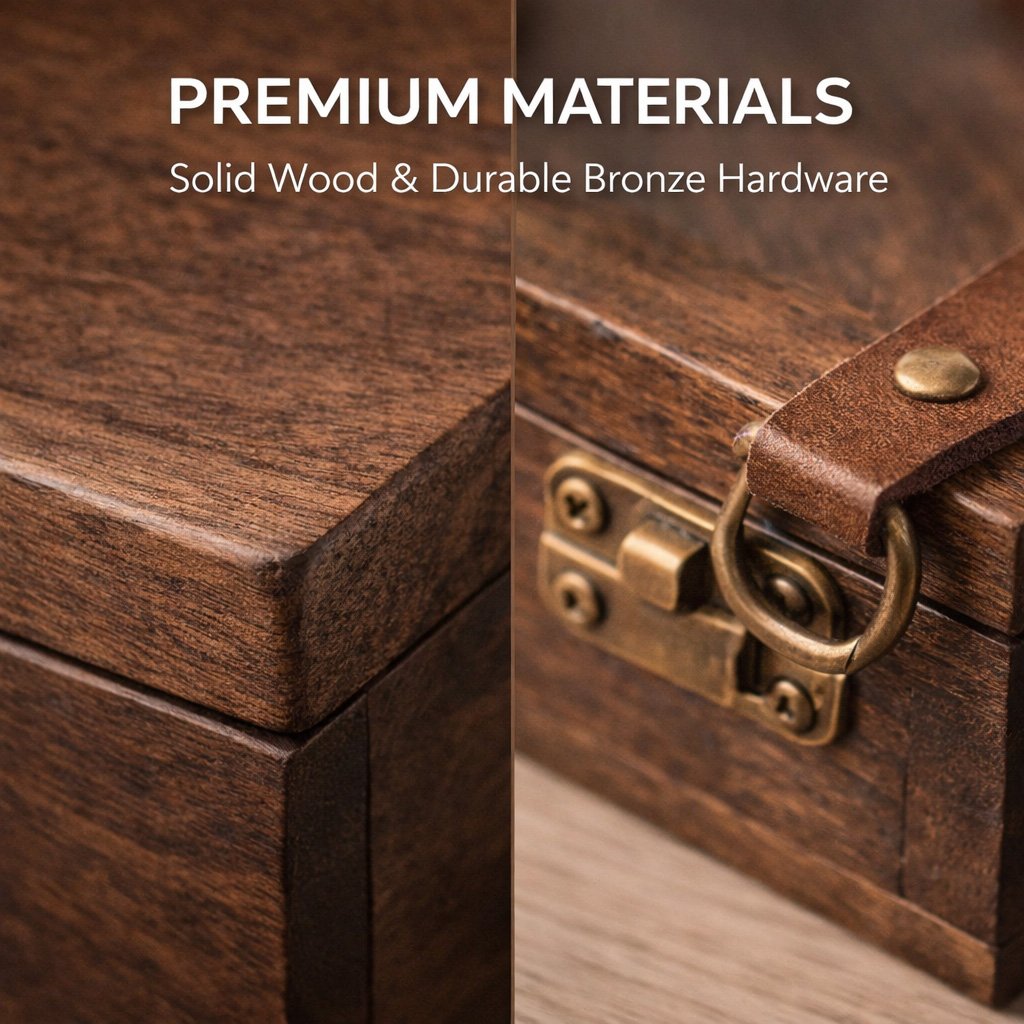 • Vintage Aesthetics: The walnut-finish wood and bronze latches appeal to customers looking for “old-world” charm and artisanal quality.