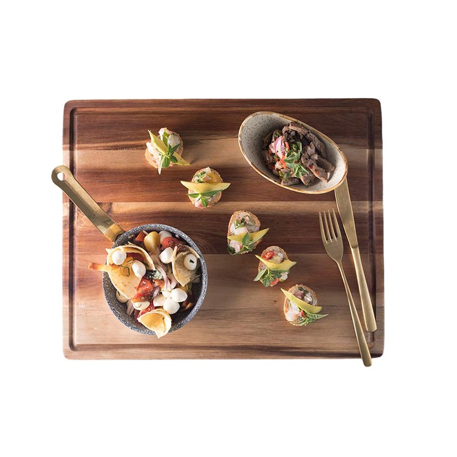 Designed for Function & Style No more messy countertops! The deep juice groove runs along the edge to catch excess liquids from roast meats, fruits, and vegetables, making cleanup a breeze. The board is substantial and sturdy, yet the integrated side handles make it effortless to lift and move.