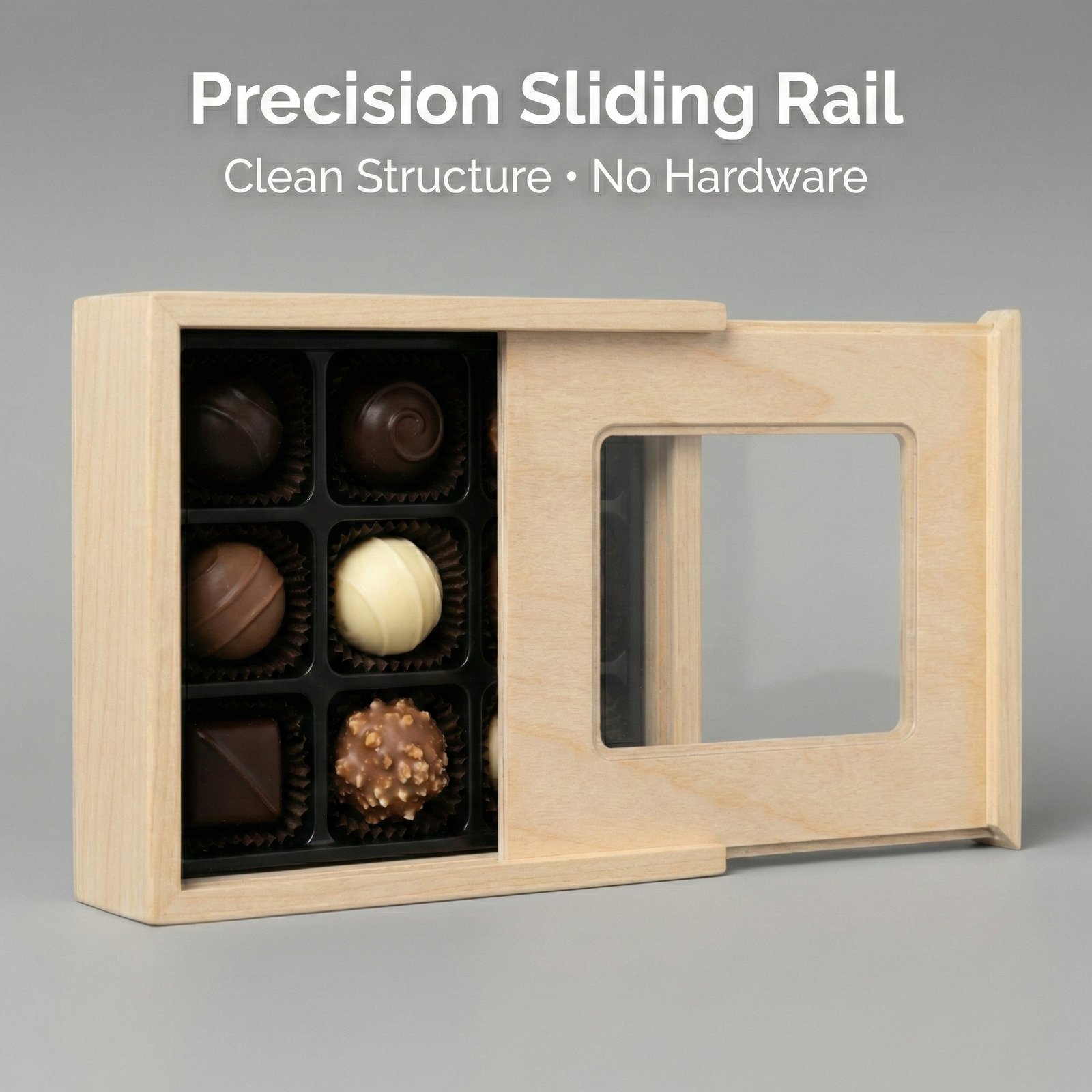 Sliding Lid Wooden Chocolate Box with Visible Display