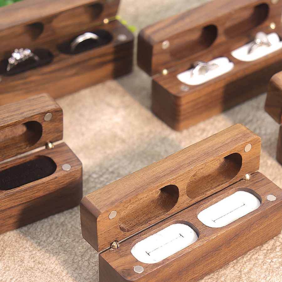 The Ultimate “Hidden” Proposal & Ceremony Box Say goodbye to bulky ring boxes that ruin the surprise. Our Slim Wooden Double Ring Box is engineered to be invisible until the moment matters. Its sleek, rectangular shape mimics a small cardholder, making it the ideal choice for secret proposals and seamless wedding ceremonies.