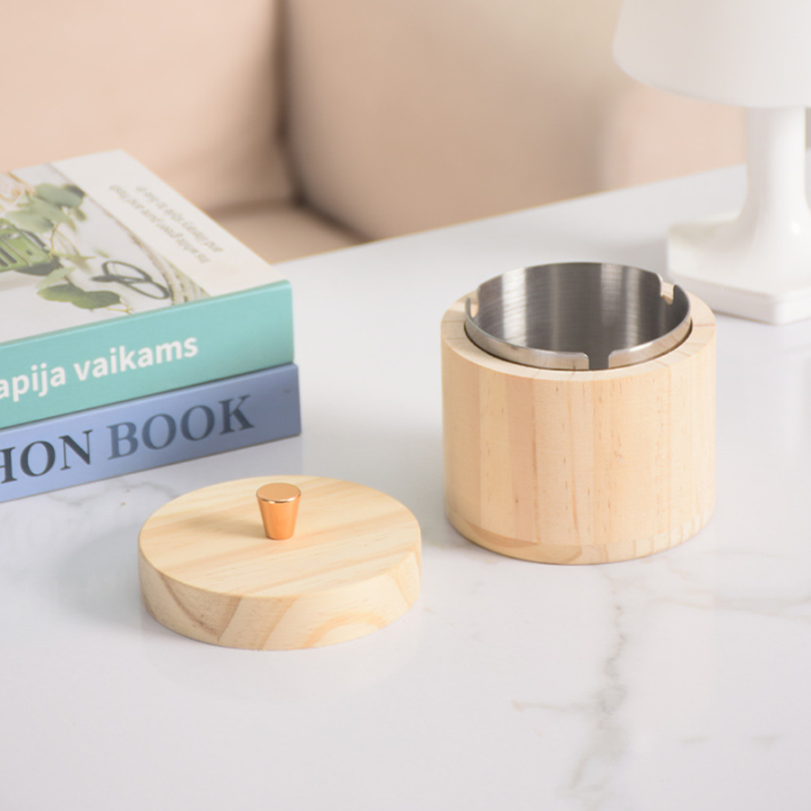 This style combines a natural wood outer body, a covered lid design and a removable metal liner, giving buyers a cleaner and more premium-looking ashtray option for different market levels.