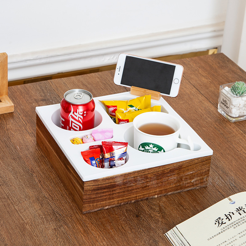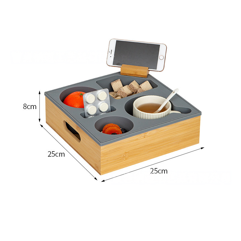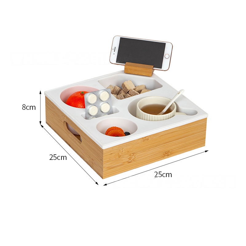 A practical wooden organizer tray designed for bedside, sofa, or desktop use.
