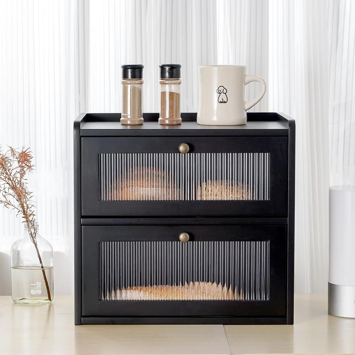 Design: Two-tier bread box with ribbed glass doors