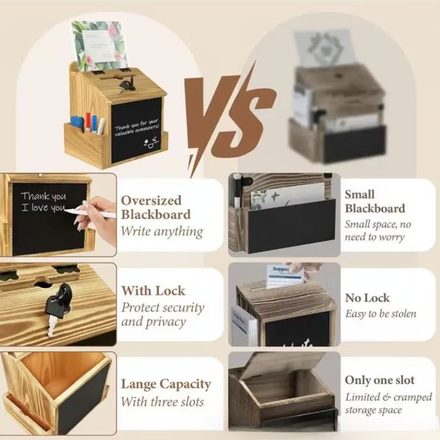 The product is easy to adapt for different markets. A hospitality buyer may use it for guest feedback, a retailer may use it for customer comments, and an event supplier may position it as a ballot or card collection box.